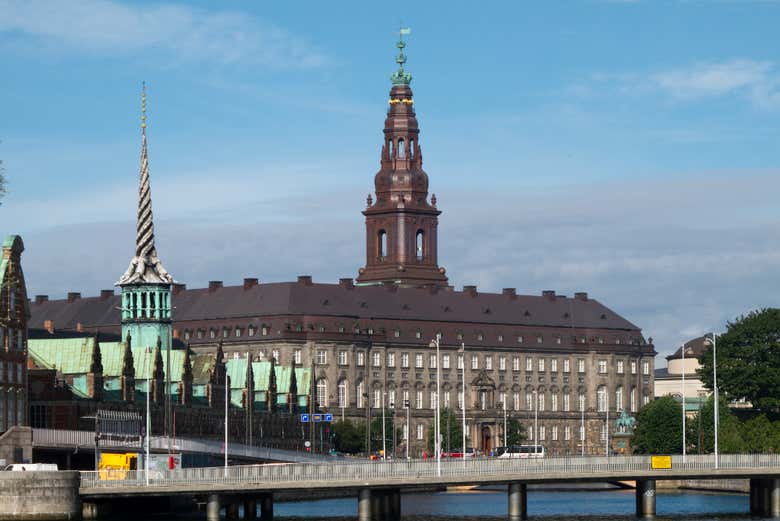 Nos reuniremos en la entrada principal del Palacio de Christiansborg. Este edificio histórico se ubica en Slotsholmen, una isla del puerto de Copenhague.